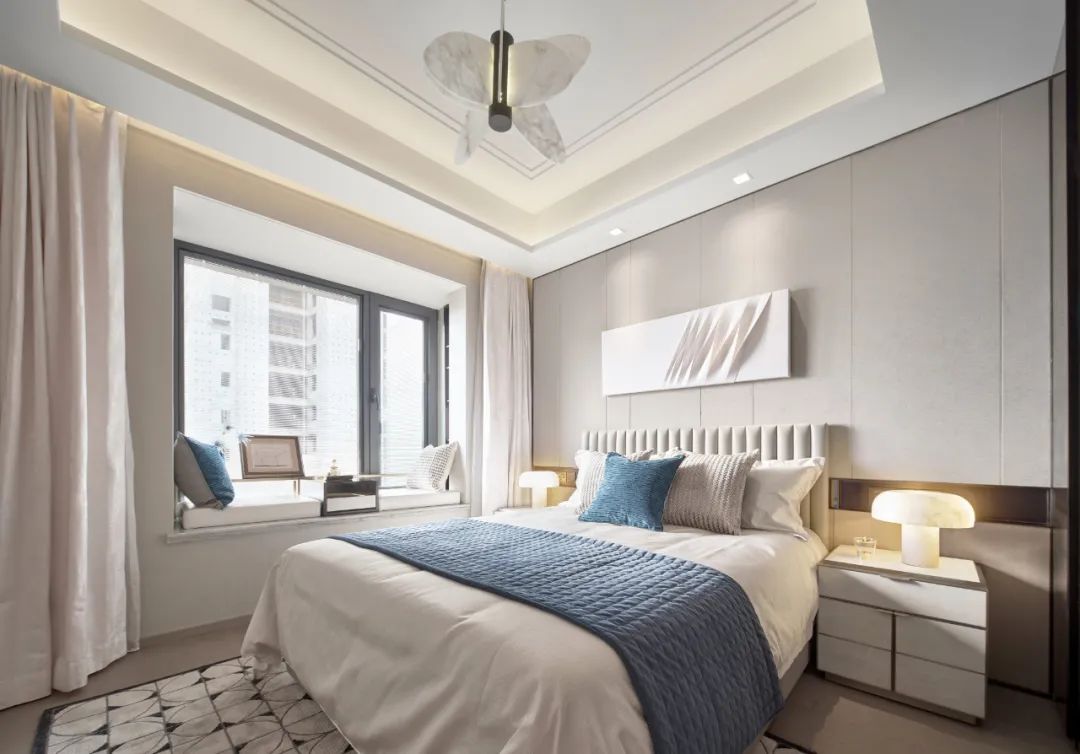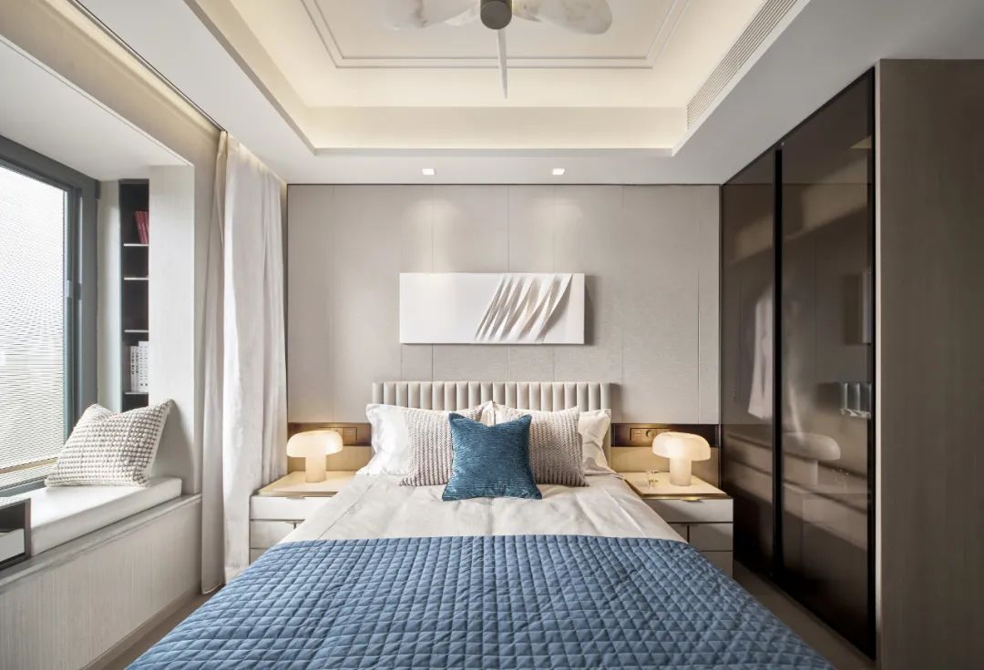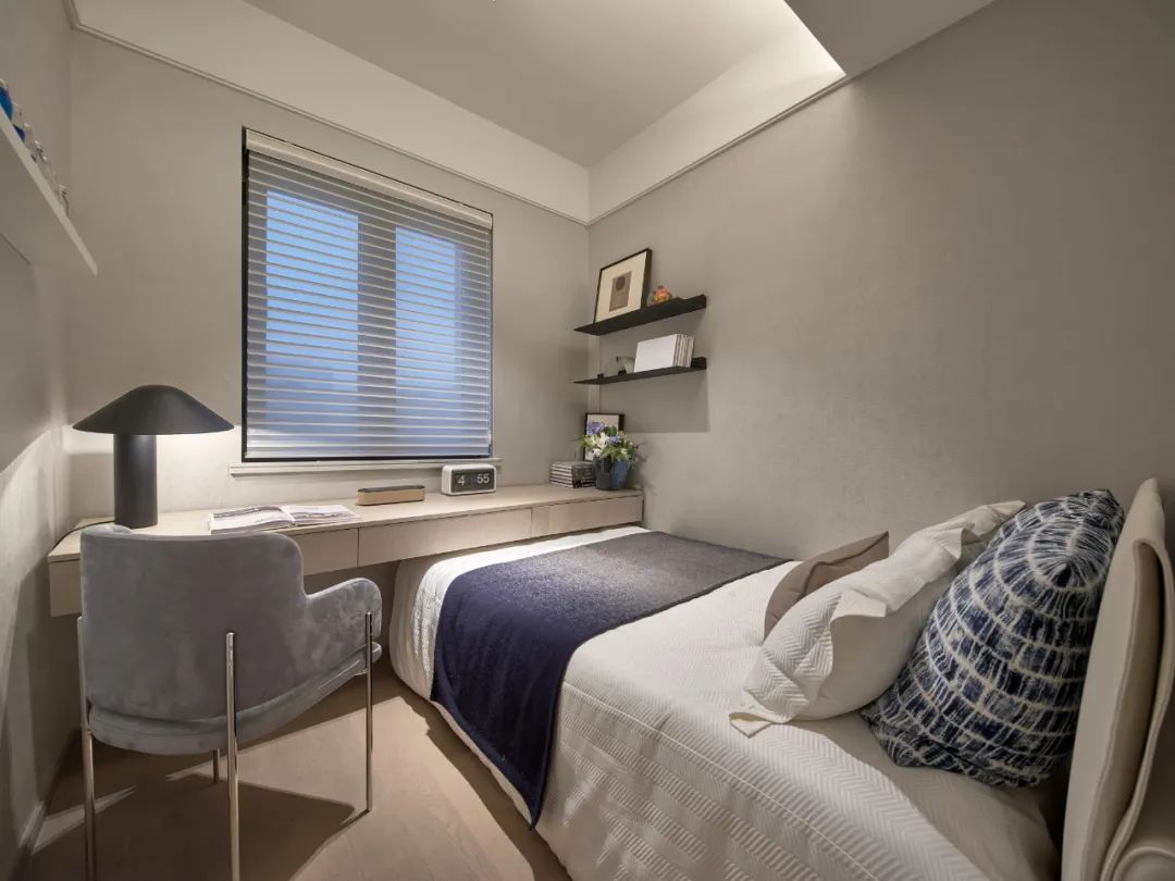 卧室拥有强大的衣帽收纳柜,使空间保持着天然的雅致气质,美好的一天从衣柜的穿搭开始,轻奢淡雅的气息在空间中久久回荡。