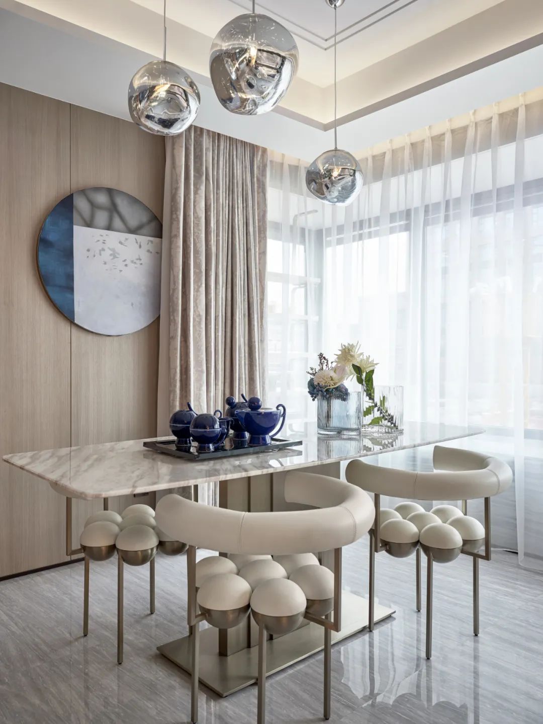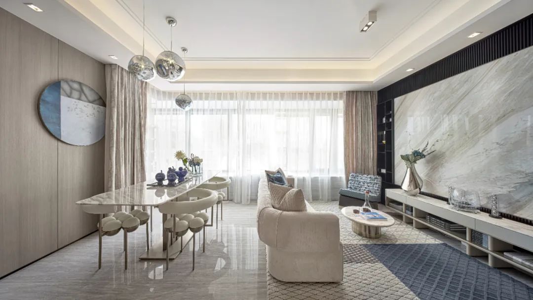 餐厅空间最大程度的地引用了客厅的自然光线,从早餐开始便与阳光相伴,使空间整体通透敞亮大气严谨。