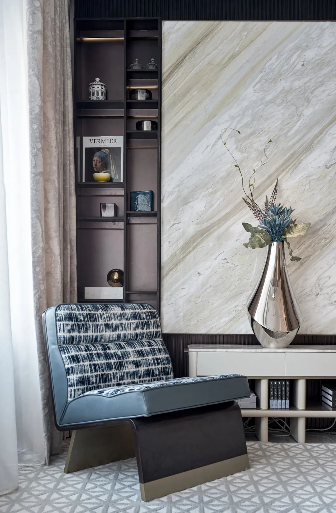 长夜渐晚,柔和灯光下阅读一本书,享受独处的时光。饱含诗意,囊括情感上的共鸣与空间所具备的舒适度,并相得益彰,营造出静谧的艺术氛围,从功能上提供舒适的生活环境,现代美学于宁静中优雅盛放。