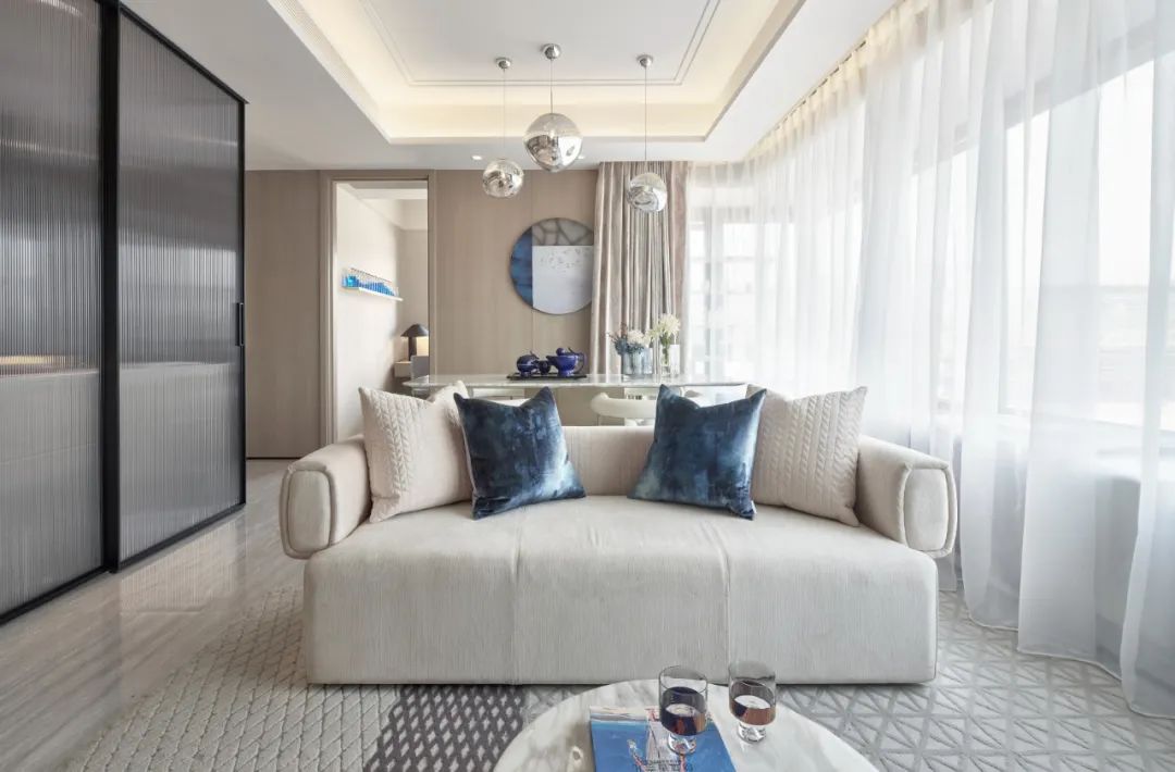 踏入室内,清新宜人的气息扑面而来。柔和的色彩与大面积窗户的搭配运用,有柔,有刚,打造一个富有清新品质,又充满现代精致舒适感的家。